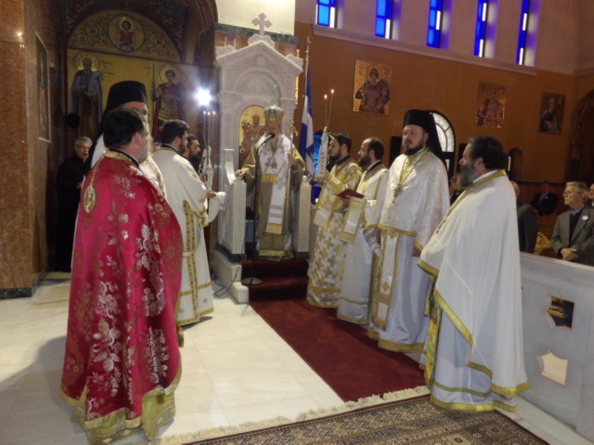 Την επομένη ημέρα, Κυριακή του Θωμά, 15 Απριλίου 2018, ο Σεβ. Ποιμενάρχης μας, πλαισιούμενος υπό του Ι. Κλήρου της Αρχ. Περιφερείας Ξυλοκάστρου, τέλεσε την Πανηγυρική Θ. Λειτουργία στον ως άνω Ι. Ναό. Στον λόγο του αναφέρθηκε στην σωτηριώδη Ανάσταση του Κυρίου μας Ιησού Χριστού, η οποία πέρασε τον άνθρωπο από την φθορά στην αφθαρσία και από τον θάνατο στην αθανασία. Σαφώς και δεν παρέλειψε να αναφερθεί στον εορταζόμενο Άγιο ο οποίος με την ιδιότητα του Μητροπολίτου Κορίνθου αγωνίστηκε στα δύσκολα χρόνια της τουρκοκρατίας δίνοντας την δική του μαρτυρία για τον Αναστάντα Κύριό μας και προσπαθώντας να αναγεννήσει το ποίμνιο του και να το αναβαπτίσει στα νάματα της Ορθόδοξης Πίστης μας.