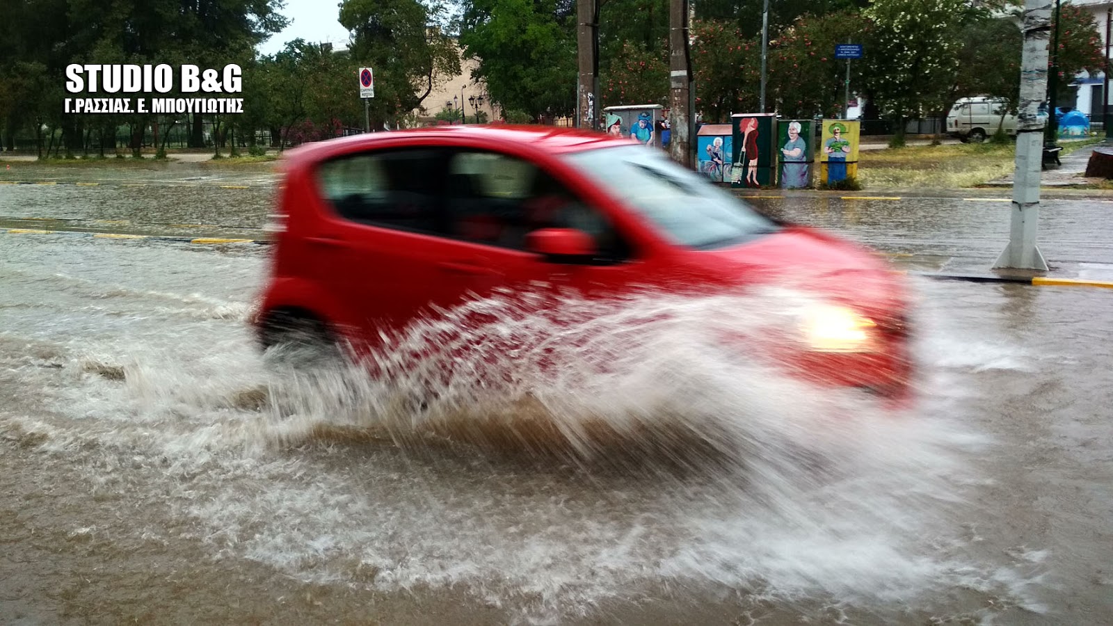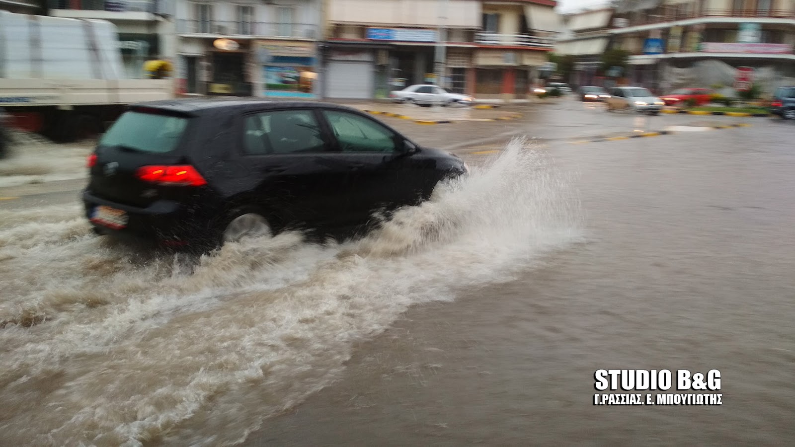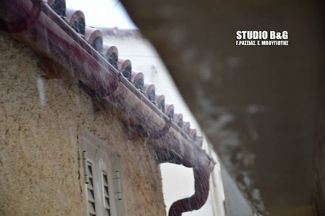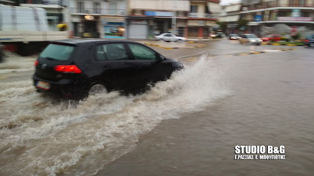 Μισή ώρα κράτησε η ισχυρή καταιγίδα στην περιοχή του Ναυπλίου και ήταν αρκετή για να μετατραπούν πολλοί δρόμοι σε ποτάμια.