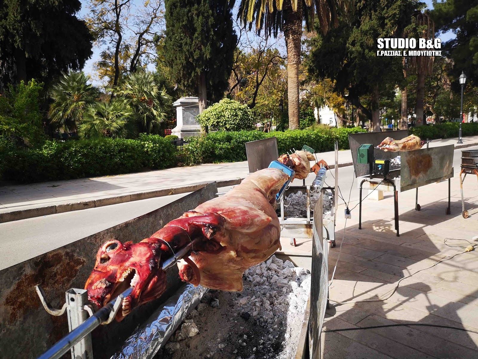 Το έθιμο αλλά και η προσέλκυση πελατών θέλει τα παραδοσιακά καταστήματα εστίασης του Ναυπλίου να ψήνουν τα αρνιά στον δρόμο και τα πεζοδρόμια κυρίως της παλιάς πόλης.