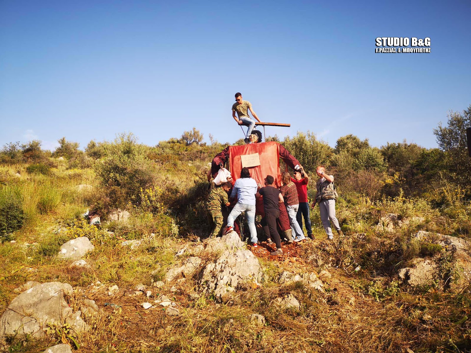 Δεκάδες οπλοφόροι στο χωριό Ασίνη του Δήμου Ναυπλιεών στην Αργολίδα, συμμετείχαν και φέτος ανήμερα του Πάσχα στο έθιμο της “εκτέλεσης” του Ιούδα την Κυριακή 27 Απριλίου 2019.