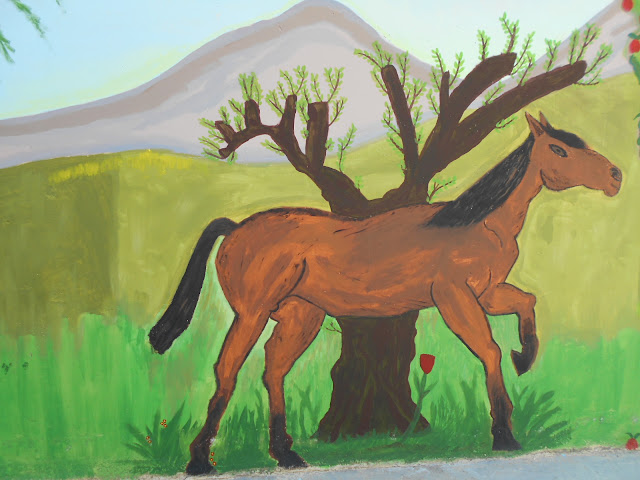 Συνέβη όμως αυτό που συχνά συμβαίνει σε πολλούς δημιουργούς. Όταν φτάσανε να πάρουν τα πινέλα, τότε λες και η εικαστικός Μάγδα Μάρα τους έδωσε μια καλλιτεχνική ελευθερία και αμέσως ξεπετάχτηκαν άλλες επιθυμίες. Ο Λεωνίδας και ο Βασίλης ήθελαν να ζωγραφίσουν άλογα. Ο Ντριτάν ήθελε να ζωγραφίσει ένα ποταμάκι, και οι άλλοι ουρανό, σύννεφα, πουλιά, την ελευθερία που είχαν χάσει. Λίγοι παρέμειναν σταθεροί στην απεικόνιση των δέντρων. Και άρχισαν τα πρώτα σχέδια, που η κα Μάρα κατεύθυνε με επιδεξιότητα και διακριτικότητα.
